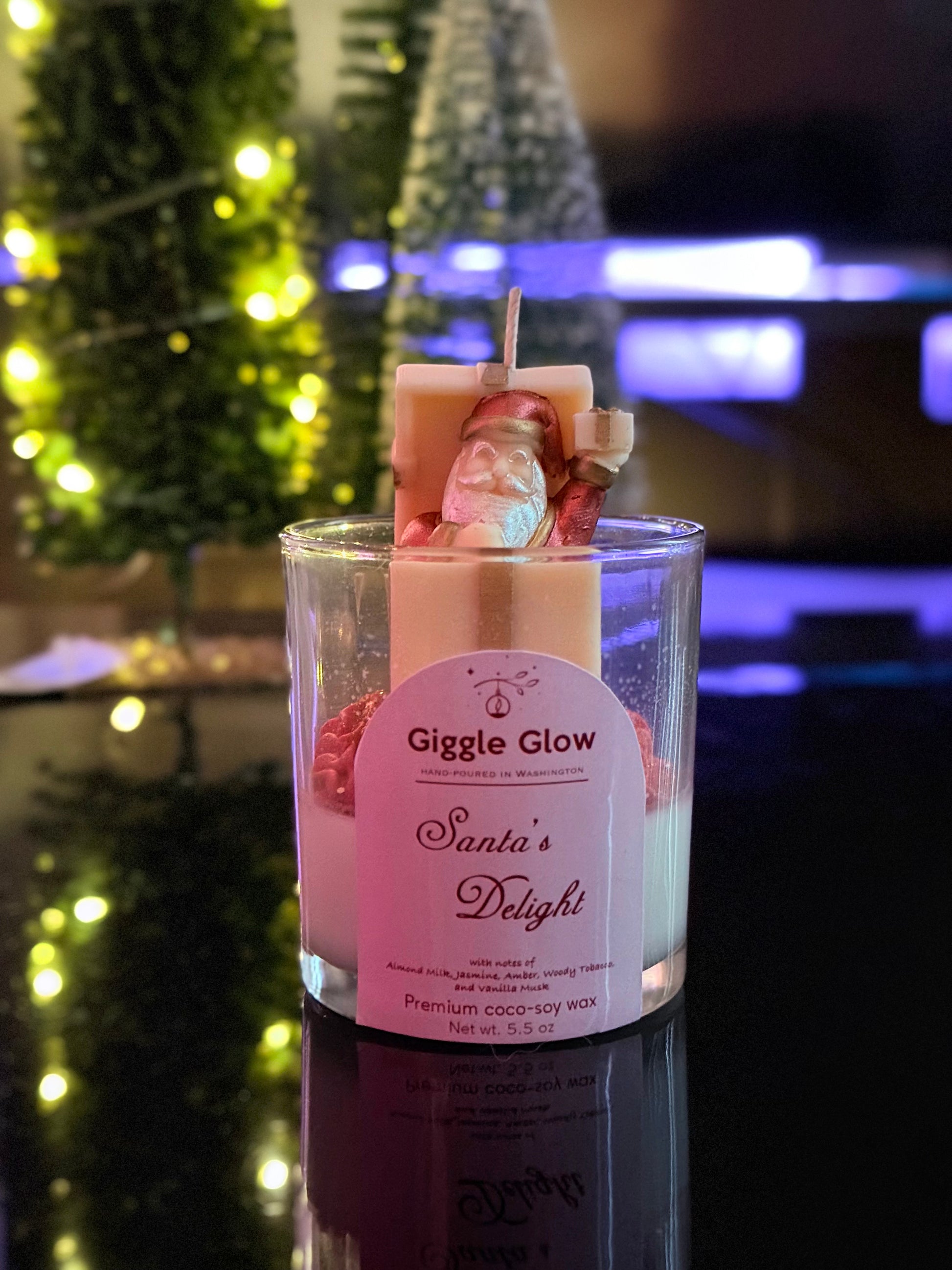 Bring the magic of Christmas to life with our Santa Candle, a charming depiction of everyone’s favorite holiday icon! Encased in a glass container, this festive candle radiates warmth and holiday cheer. Hand-poured using 100% natural soy wax, it can be customized with your favorite holiday fragrances like cinnamon, vanilla, or peppermint. Perfect for holiday decor, gifting, or creating a joyful seasonal atmosphere.